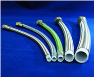 钢丝编织增强的PTFE管道有良好的挠曲性,并能耐高温高压,在200℃、210公斤/厘米2压力下可长期工作,在室温中爆破压力大于1000公斤/厘米2时仍保持不坏。这种高压软管多用于耐高压耐腐蚀的给排料管,蒸汽管道,轧钢机高压油管,飞机液压系统和冷气系统的高压中压低压管道,助力液压系统的各活动部位的主要连接件,它还同时用于燃油输油泵驱助系统、起落架起收系统、刹车系统、减速扳收放系统等。中低压软管则常用于飞机座舱盖系统和作为可动管路的冷气通道等。